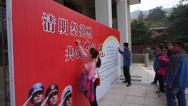 大家對革命先烈的墓碑進行清掃,向革命英雄三鞠躬,并敬獻了花籃,青年們來到抗日戰(zhàn)爭宣傳展板前參觀,追思為國家興衰、民族存亡不惜拋頭顱、灑熱血的英雄,深切緬懷革命先烈?;顒又?,大家在“清明祭英烈,共鑄中華魂”宣傳牌前依次留言明志,誓將革命先烈大無畏的奉獻精神傳承下去,在自己的崗位上開花結果,讓青春無悔。