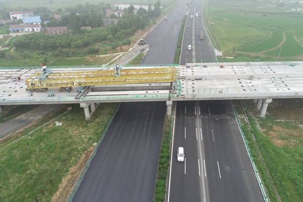 上跨G3京臺(tái)高速分離立交橋?yàn)樯娓咚偈┕?所跨路段日均車(chē)流量達(dá)五萬(wàn)多輛,并與正在進(jìn)行的高速改擴(kuò)建瀝青攤鋪交叉施工,需要在規(guī)定的半幅封閉時(shí)間內(nèi)完成上跨梁板架設(shè)任務(wù),施工環(huán)境復(fù)雜,組織難度較大。經(jīng)過(guò)多次專家論證,項(xiàng)目不斷優(yōu)化施工方案,并堅(jiān)持責(zé)任到人,狠抓時(shí)間節(jié)點(diǎn),有效克服了各項(xiàng)困難,梁板架設(shè)有序推進(jìn),順利實(shí)現(xiàn)了上跨高速橋的順利合龍。