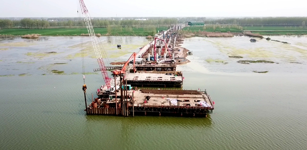 4月8日下午,固蚌高速2標兩項節(jié)點目標取得突破,控制性工程澮河特大橋南引橋樁基全部完成,39號主墩左幅第一座鋼圍堰順利合攏,同時各施工點都呈現(xiàn)出一片火熱大干景象。