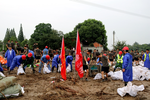 7月23日,路面公司組建的防汛抗洪搶險(xiǎn)救援隊(duì)在完成同大圩保衛(wèi)戰(zhàn)后,又快速集結(jié)隊(duì)伍,冒雨逆行,轉(zhuǎn)戰(zhàn)增援紫荊村小南河抗洪搶險(xiǎn),和正在參與抗洪搶險(xiǎn)的解放軍官兵共同投入戰(zhàn)斗。連續(xù)6小時(shí)的冒雨奮戰(zhàn),共填裝轉(zhuǎn)運(yùn)沙袋5000多只,成功完成強(qiáng)固堤壩任務(wù),比預(yù)定時(shí)間提前了近兩小時(shí)。