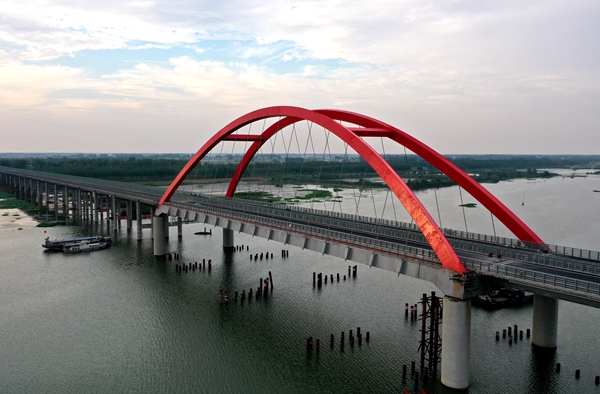媒體們聚焦特大橋施工工藝、技術(shù)難點(diǎn)和建設(shè)歷程等內(nèi)容進(jìn)行了跟蹤報(bào)道。澮河特大橋?yàn)榭绾降朗┕?,全長(zhǎng)2.611千米,是固蚌高速02標(biāo)項(xiàng)目關(guān)鍵控制性工程,其中主橋?yàn)?35米提籃式鋼箱系桿拱橋,也是安徽省高速公路上第一座組合梁系桿拱橋。經(jīng)過(guò)全體員工的不懈奮斗、攻堅(jiān)克難,澮河特大橋提前2個(gè)月完成建設(shè)任務(wù),并于7月1日正式通車(chē)試運(yùn)營(yíng)。