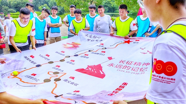 在新四軍江北指揮部紀念館,全員參觀了館藏的200余幅珍貴歷史照片、圖表和文獻資料,認真了解了新四軍組建、發(fā)展和壯大的歷程,切實的感受革命先烈們?yōu)榱诵轮袊膭倮麙侇^顱灑熱血的大無畏精神。隨后,大家共同完成了《歌唱祖國》合唱、“長征精神”、“雷區(qū)取水”、填寫入職寄語和觀看愛國主義教育片《建黨偉業(yè)》等一系列團建活動,在培養(yǎng)新員工團隊協(xié)作能力的同時,進一步加強了紅色教育。