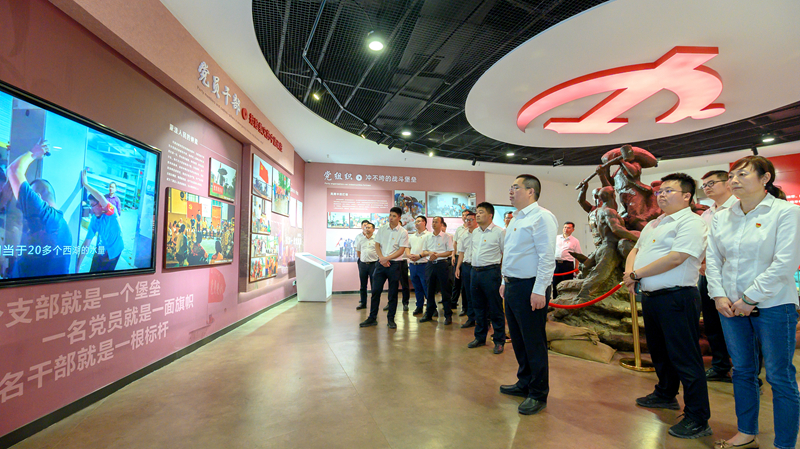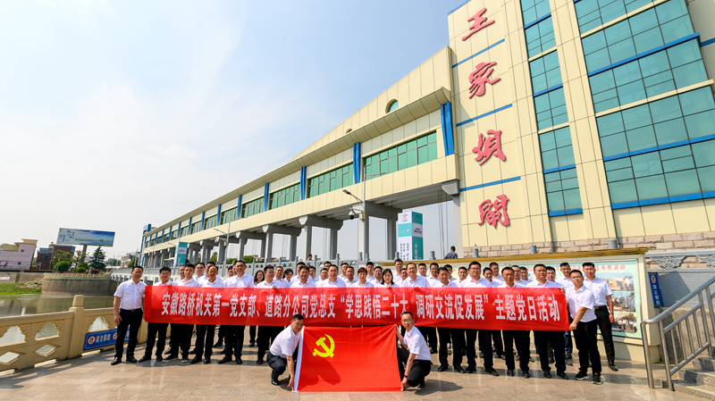在調(diào)研交流環(huán)節(jié),全體人員先后參觀了項(xiàng)目預(yù)制梁場(chǎng)、阜南南互通施工現(xiàn)場(chǎng),實(shí)地查看了項(xiàng)目標(biāo)準(zhǔn)化建設(shè)、安全文明施工和技術(shù)工藝運(yùn)用情況,并在項(xiàng)目會(huì)議室圍繞推動(dòng)黨建生產(chǎn)深度融合、加強(qiáng)人才隊(duì)伍建設(shè)和深化項(xiàng)目基礎(chǔ)管理等方面開展了座談交流。在參觀踐學(xué)環(huán)節(jié),全體人員來(lái)到被稱為“千里淮河第一閘”的王家壩閘,重溫習(xí)近平總書記考察安徽重要講話指示精神。在講解員的帶領(lǐng)下,大家通過(guò)觀看《王家壩紀(jì)錄片》和參觀王家壩抗洪紀(jì)念館內(nèi)的7個(gè)展廳,全面了解蒙洼群眾的抗洪歷史,深入領(lǐng)會(huì)王家壩精神的豐富內(nèi)涵。