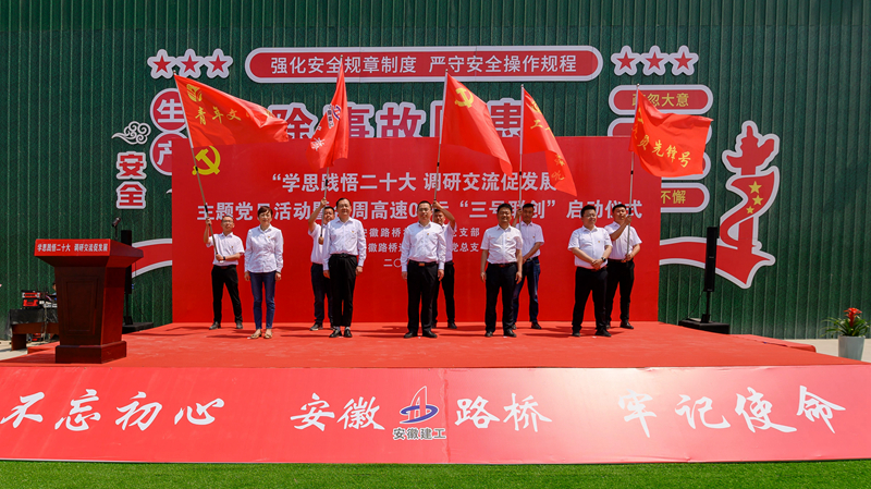 5月12日,公司機(jī)關(guān)第一黨支部與道路分公司黨總支聯(lián)合開展“學(xué)思踐悟二十大 調(diào)研交流促發(fā)展”主題黨日活動(dòng),共同見證合周高速潁臨段LJ04標(biāo)“三號(hào)聯(lián)創(chuàng)”啟動(dòng)儀式。公司黨委書記、董事長(zhǎng)錢申春以普通黨員身份參加活動(dòng)并主持召開主題教育調(diào)研座談會(huì)。