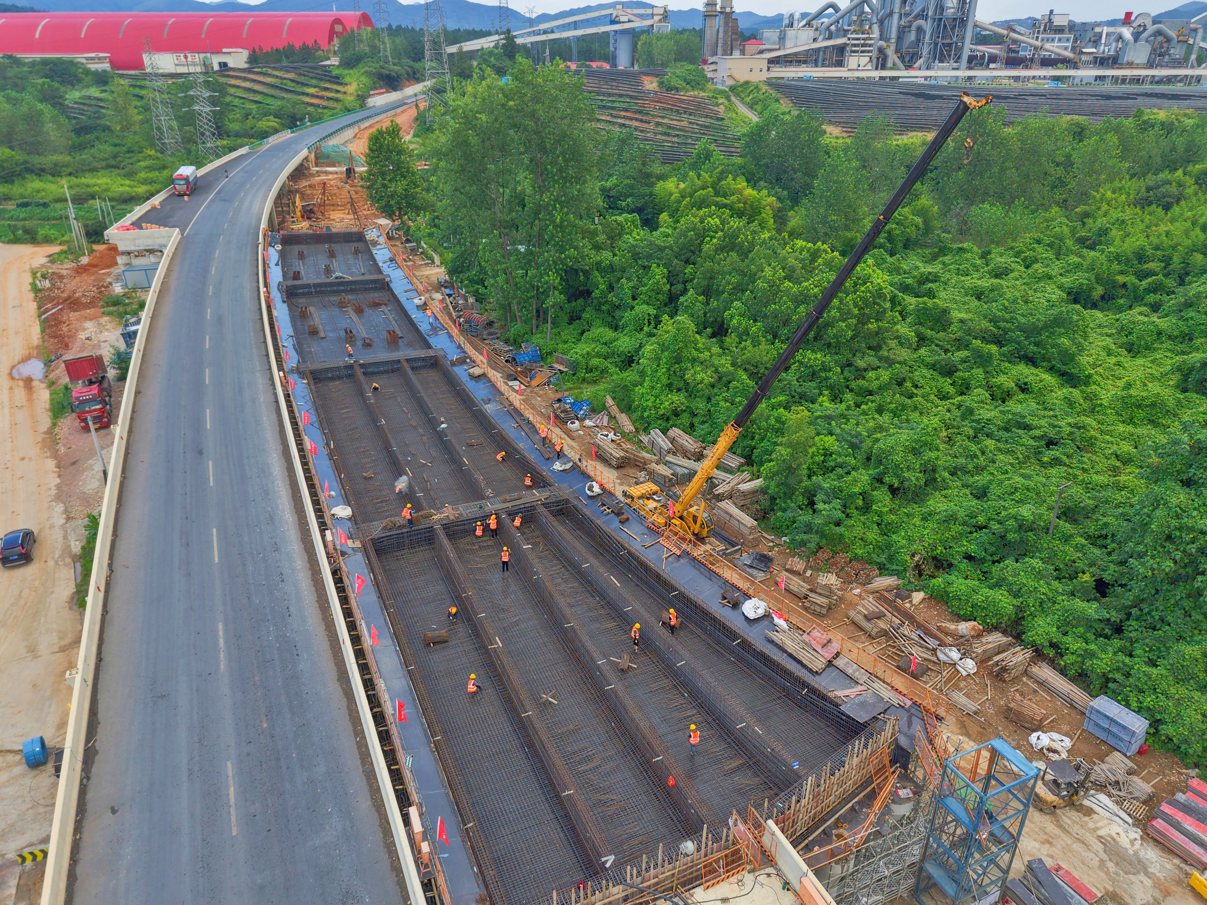 面對“邊施工、邊通車”的特殊施工環(huán)境,項目團隊堅持“既要保進度,更要保暢通”的原則,采取半幅交替施工模式,將施工區(qū)域劃分為若干個作業(yè)斷面,同步推進橋梁現(xiàn)澆、瀝青面層攤鋪等關(guān)鍵工序。王超介紹,目前全線路基工程已完成95%,全線預(yù)制梁板橋施工也已全部完成。作為控制性工程,水東四號橋施工進展順利,目前已完成約85%的工程量,正在進行右幅第五聯(lián)鋼筋綁扎及第六聯(lián)樁基施工作業(yè)。