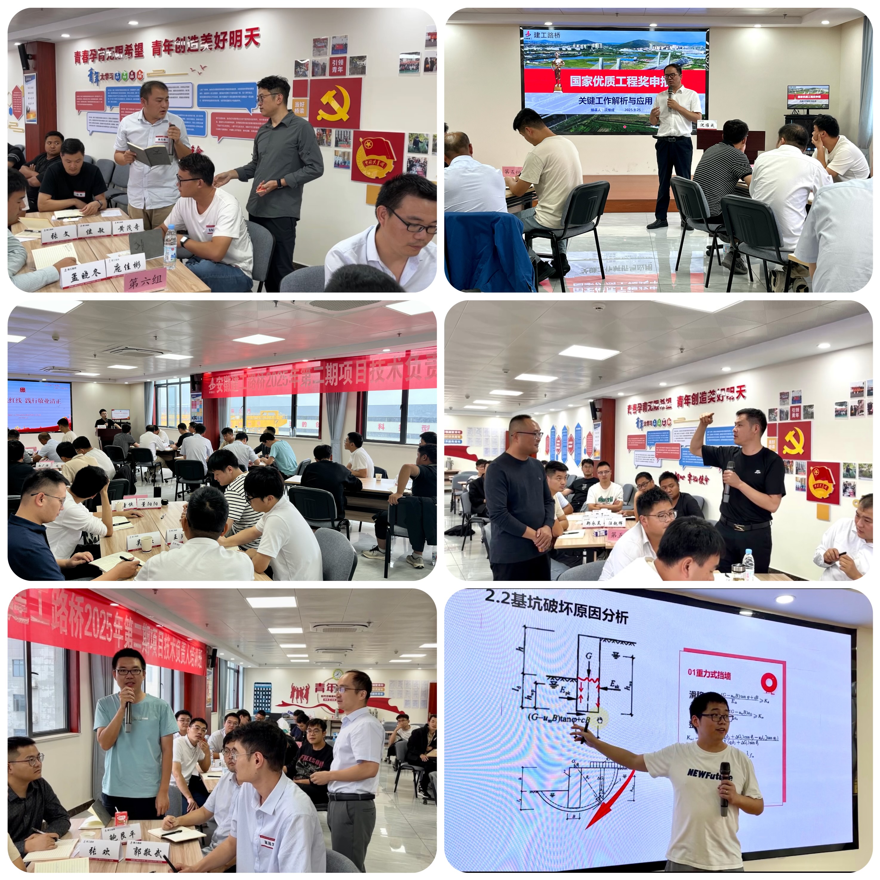 培訓班完全采用內(nèi)部開發(fā)課程,包括施工工法選題與申報、國家優(yōu)質(zhì)工程獎申報、基坑工程常見病害分析及支護結(jié)構(gòu)設(shè)計、市政工程道路標準化施工、施工技術(shù)助產(chǎn)增效、廉潔風險防范、法律風險防范以及通用管理課程等。培訓強調(diào)一線典型實戰(zhàn)案例探討,深入剖析原因,通過場景重現(xiàn)、主題討論、分享點評等形式,促進參訓學員間互動交流與經(jīng)驗傳承,有效幫助項目技術(shù)管理人才隊伍識別技術(shù)盲點及誤區(qū)。