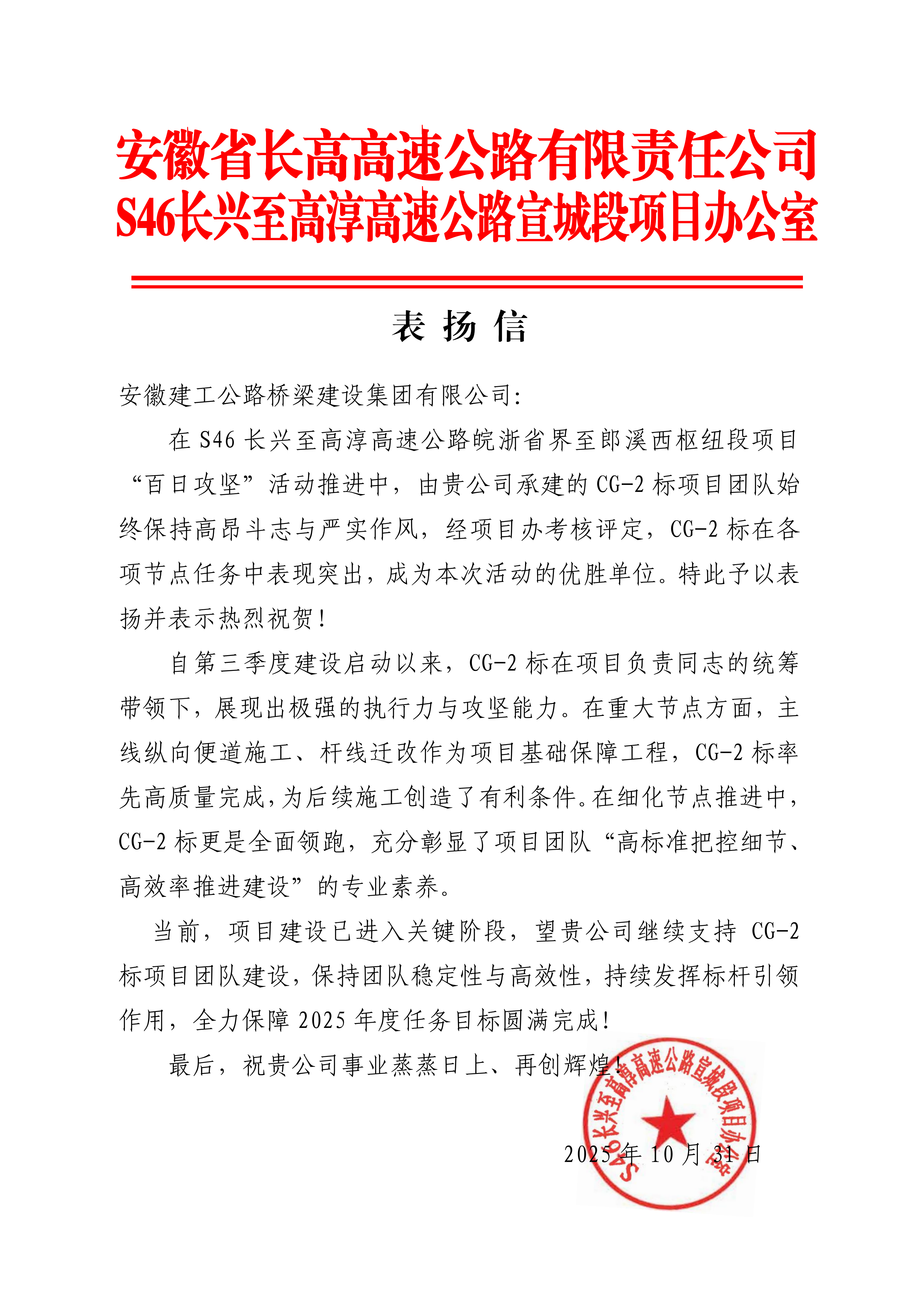 公司承建的CG-2標項目團隊始終保持高昂斗志與嚴實作風,經(jīng)項目辦考核評定,CG-2標在各項節(jié)點任務(wù)中表現(xiàn)突出,成為本次活動的優(yōu)勝單位。——安徽省長高高速公路有限責任公司