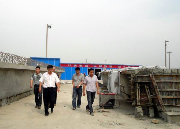 7月2日下午2點(diǎn)30分,汪總一行先來到馬鞍山東環(huán)改造項(xiàng)目指導(dǎo)工作,該項(xiàng)目經(jīng)理冷峰全程陪同。汪總一行首先頂著酷暑、披著煙塵,來到了該項(xiàng)目部的清淤現(xiàn)場(chǎng)、預(yù)制場(chǎng)和樁基現(xiàn)場(chǎng),仔細(xì)耐心的查看了各項(xiàng)施工任務(wù)的進(jìn)展情況以及質(zhì)量情況。隨后,在項(xiàng)目部會(huì)議室,汪總一行又聽取了項(xiàng)目經(jīng)理冷峰關(guān)于近期該項(xiàng)目工程、試驗(yàn)、安全、財(cái)務(wù)等工作開展情況的匯報(bào)后,在肯定了該項(xiàng)目前期工作的同時(shí),也針對(duì)其中的工程質(zhì)量、安全文明等存在的問題,提出了寶貴意見。希望該項(xiàng)目能抓緊落實(shí),及時(shí)把問題解決。該項(xiàng)目經(jīng)理冷峰表示一定會(huì)按照公司的意見與要求,解決問題,提高工作水平。