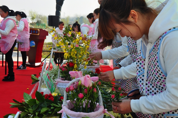 在主題為“最美的花兒獻給你”的花藝比賽中,來自兩家單位的十位女職工沉著冷靜,認真挑選花材,巧妙構(gòu)思作品,優(yōu)雅的動作,嫻熟的技藝,使得一個個設(shè)計新穎、造型亮麗的花藝作品呈現(xiàn)在觀眾面前,為三月的龍舒大地增添了幾許春色。在 “百花齊放”踩氣球友誼賽中,兩家單位女職工自由組合,隨著主持人的一聲令下,選手們一沖而上,互相踩破對手的氣球,比賽氣氛熱烈,充滿激情,吶喊聲、歡笑聲匯聚成一條快樂的河流。在團體跳繩比賽中,兩隊隊員齊心協(xié)力,熱情高漲,彩繩離地起,群鳳當空舞,盡情演繹著巾幗魅力,把現(xiàn)場氣氛推向高潮。