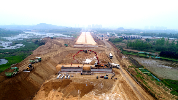3月25日,羅埠河特大橋主橋最后一個承臺歷時11個小時的澆筑,順利完成,自此進入地面以上施工。4月11日,徽州大道(廬江段)項目全線首片箱梁順利架設,較業(yè)主下達的架梁工期提前了半個多月,施工進展再次取得突破,標志著項目全面進入上部結構施工階段。