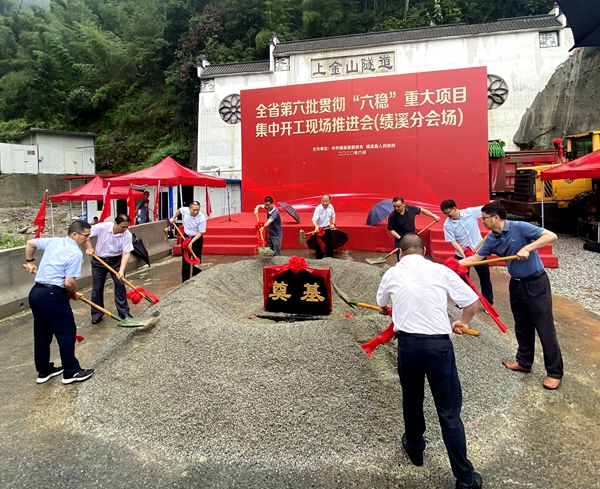 6月19日,安徽省第六批貫徹“六穩(wěn)”重大項目集中開工現(xiàn)場推進會(績溪分會場)在公司承建的S456績溪至譚家橋公路上金山隧道項目舉行,該項目開工儀式也同期舉辦。績溪縣委書記黃德泉現(xiàn)場宣布全縣第六批貫徹“六穩(wěn)”重大項目集中開工??h委常委、常務(wù)副縣長胡旭華發(fā)表講話,公司黨委副書記、總經(jīng)理錢申春應(yīng)邀出席并致辭。縣政府副縣長、縣經(jīng)開區(qū)管委會主任劉林發(fā)主持儀式。