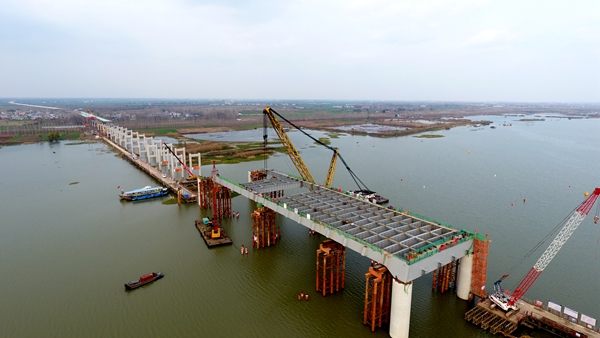 為保證該項目控制性工程—澮河特大橋按時架好梁、鋪好板、出精品,項目嚴格把控工序,優(yōu)化資源配置,精選勞務隊伍。一套組合拳下來,澮河特大橋引橋鋼梁架設、橋面板安裝實現(xiàn)同步快速推進,主跨135米鋼梁僅余最后一節(jié)段架設,即將實現(xiàn)合龍。
