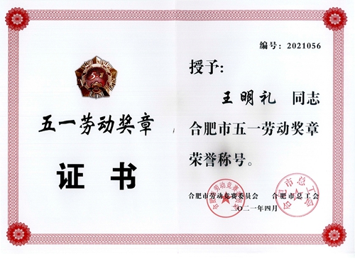 公司員工榮獲合肥市“五一勞動獎?wù)隆?/h2>