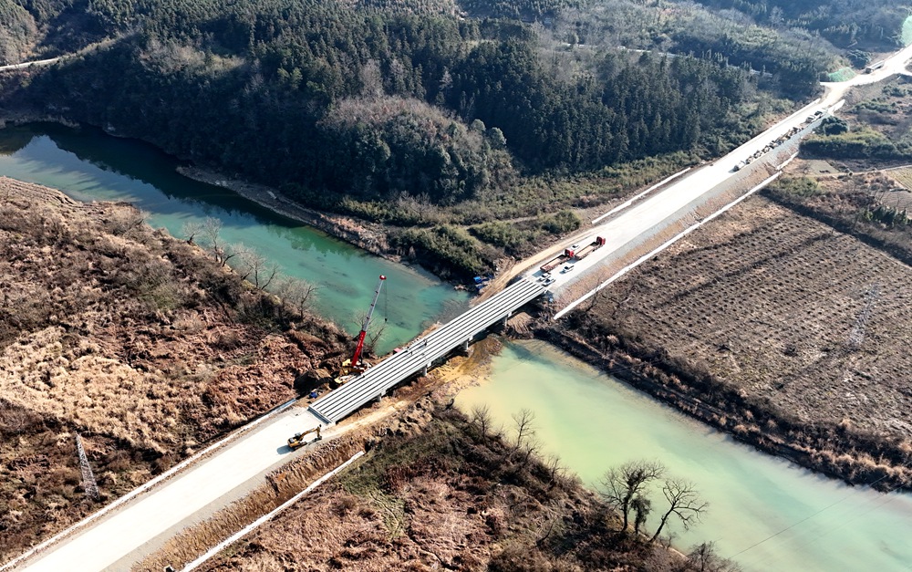 皖西南山區(qū)上半年雨水量大、晴天少,對(duì)項(xiàng)目建設(shè)的順利推進(jìn)會(huì)產(chǎn)生不利影響。為確保全年任務(wù)趕在前、贏在前,項(xiàng)目科學(xué)謀劃“春節(jié)不停工、節(jié)后早復(fù)工”,全方位優(yōu)化施工組織安排,確保路面水穩(wěn)、橋梁鋪裝等作業(yè)面生產(chǎn)資源儲(chǔ)備充足。春節(jié)期間,項(xiàng)目完成一座中橋梁板架設(shè),兩公里水穩(wěn)底基層攤鋪,多項(xiàng)關(guān)鍵指標(biāo)超序時(shí)進(jìn)度完成。