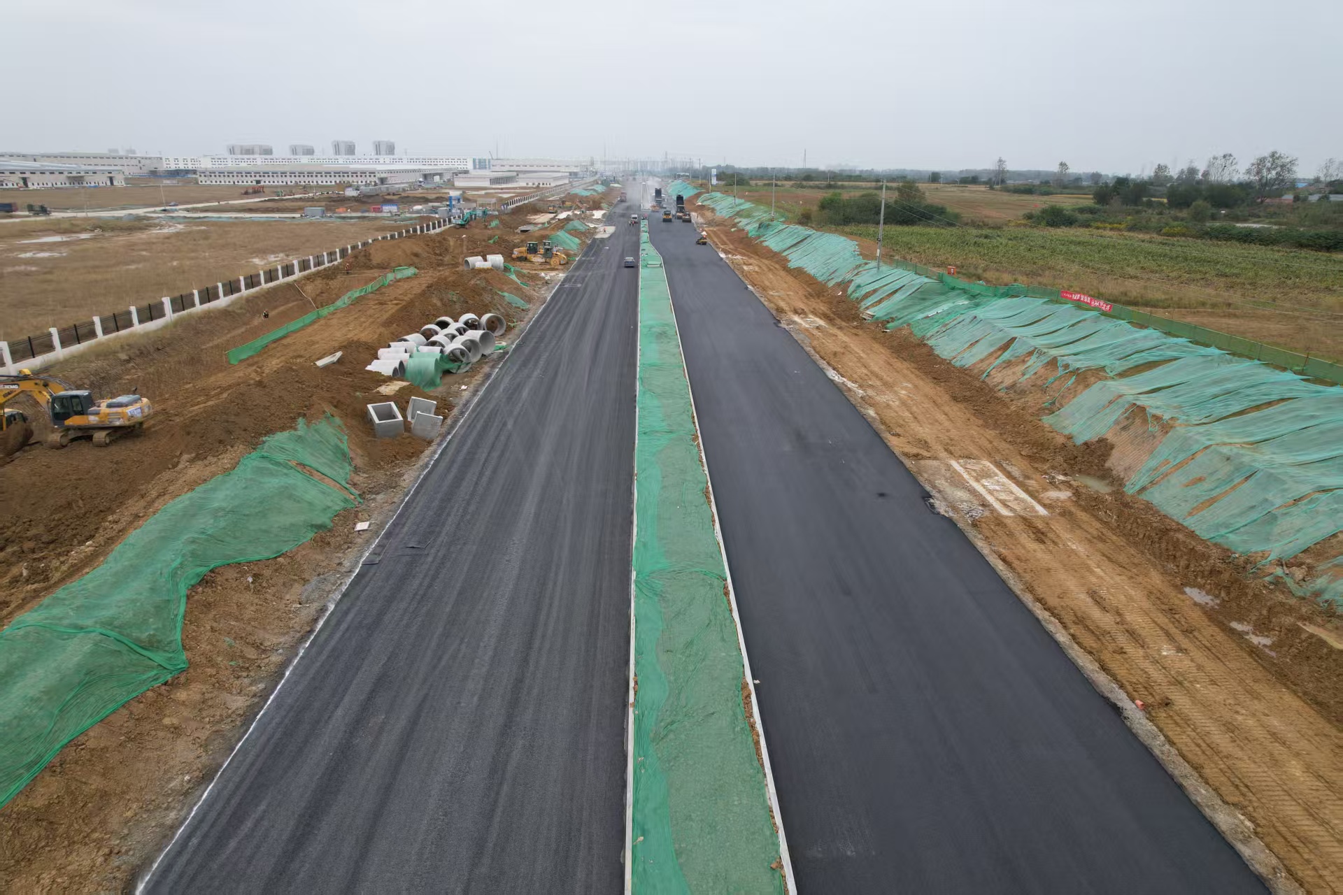 【路橋“競”行時】長豐縣余杭路項目鳳廬大道下面層瀝青攤鋪完成