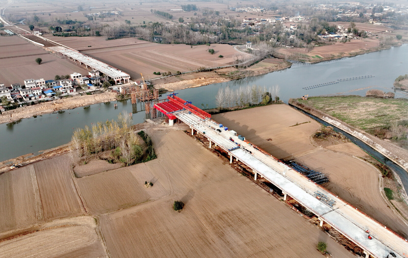 推動(dòng)新工藝研發(fā)。在S235濉唐路三期,項(xiàng)目通過“不對(duì)稱航道水域架橋機(jī)安裝鋼箱梁施工工法”的研發(fā)應(yīng)用,使整體架梁效率提升40%,高效完成涉水段梁體架設(shè)任務(wù)。在S247(圍烏路)改建工程二期,項(xiàng)目通過“永久對(duì)撐型鋼圍堰預(yù)應(yīng)力加固安裝施工工法”的研發(fā)應(yīng)用,顯著提升了圩區(qū)路段鋼板樁圍堰施工的穩(wěn)定性及效率。