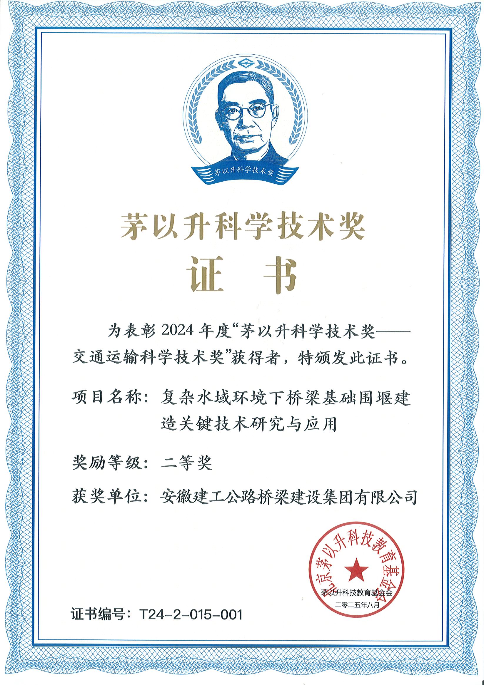 11月19日至21日,首屆道路交通學(xué)術(shù)年會暨“茅以升交通運(yùn)輸科學(xué)技術(shù)獎”頒獎大會在廣西南寧隆重舉行,公司自主申報的《復(fù)雜水域環(huán)境下橋梁基礎(chǔ)圍堰建造關(guān)鍵技術(shù)研究與應(yīng)用》課題榮獲“茅以升科學(xué)技術(shù)獎-交通運(yùn)輸科學(xué)技術(shù)獎”二等獎。