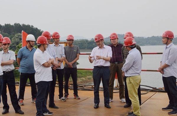 5月24日下午,集團公司副總經(jīng)理戴良軍到萬佛湖02標項目檢查指導工作,集團總工辦副主任崔林釗、公司副總經(jīng)理、總工程師彭申凱,副總經(jīng)理任杰陪同。