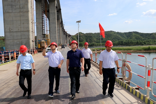 錢總深入施工現(xiàn)場,實地察看了項目工程進展、安全質(zhì)量管控、現(xiàn)場施工組織等情況,詳細詢問了主橋合攏段工期節(jié)點計劃并就進一步加快項目建設進度進行了部署安排。在項目南引橋,錢總詢問了安全管控手段、進度安排計劃、質(zhì)量保證措施。他強調(diào),黃河特大橋項目位于小浪底庫區(qū)內(nèi),項目部要提高站位,進一步做好綠色文明施工,把項目建設對黃河生態(tài)環(huán)境的影響降到最低,彰顯國企擔當。