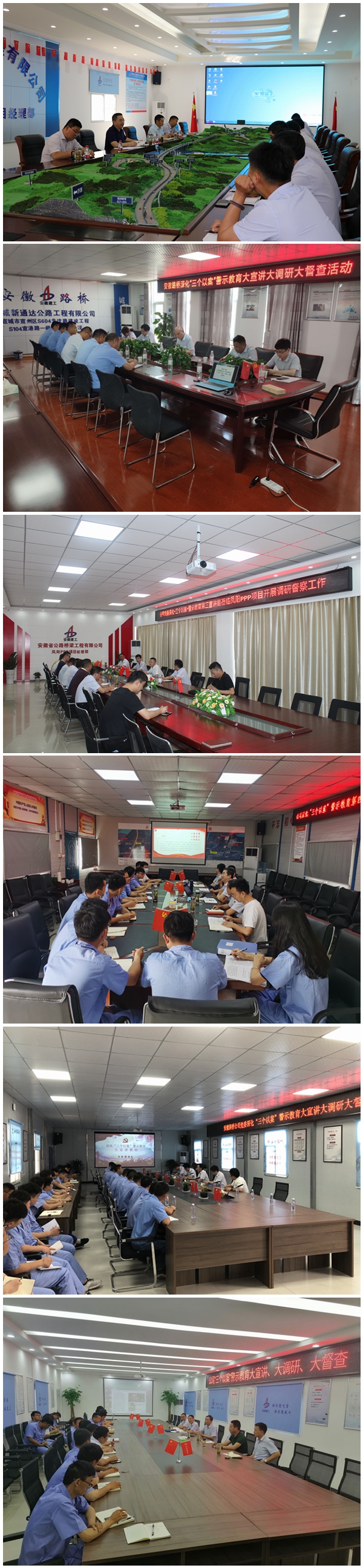 近日,公司黨委深化“三個(gè)以案”警示教育9個(gè)宣講組分別深入黃河特大橋項(xiàng)目、宣城PPP項(xiàng)目、蒙城PPP項(xiàng)目、明巢高速05標(biāo)等省內(nèi)外重點(diǎn)項(xiàng)目、偏遠(yuǎn)項(xiàng)目集中開(kāi)展大宣講、大調(diào)研、大督查,宣講警示教育工作要求和典型案例,調(diào)研解決項(xiàng)目一線存在的困難和問(wèn)題,廣泛聽(tīng)取職工意見(jiàn)建議。