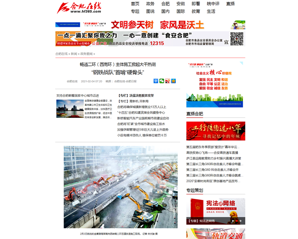 安徽路橋公司承建的暢通二環(huán)(西南環(huán))工程是目前合肥市最重要的市政工程之一。自項目建設(shè)以來,備受社會各界的高度關(guān)注。特別是在春節(jié)期間,項目鉚足干勁、大干正酣的諸多場景,得到人民網(wǎng)、中國日報、學習強國、安徽衛(wèi)視、中安在線、安徽網(wǎng)、新安晚報、澎湃新聞、合肥日報等眾多媒體的全方位、多角度報道。
