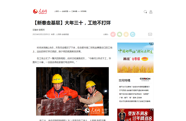 人民網(wǎng)【新春走基層】專欄報道了該項目大年三十工地不打烊,參建人員持續(xù)奮戰(zhàn)在施工一線。中國日報海外版《End of the road》、合肥日報《“鋼鐵戰(zhàn)隊”首啃“硬骨頭”》報道了公司第二次對老舊匝道橋拆除工作的場景。安徽衛(wèi)視超級新聞場等媒體以《“鋼鐵戰(zhàn)士”組隊 南二環(huán)改造工程第二階段施工啟動》報道了南二環(huán)改造工程順利進入第二階段施工節(jié)點的訊息。學習強國合肥學習平臺、澎湃新聞以《合肥:暢通南二環(huán) 鉚足干勁 大干正酣》為題,合肥新聞聯(lián)播以《“步履不停”保暢通 建設(shè)按下“快進鍵”》《過年堅守南二環(huán) 來年道路早暢通》為題,報道了春節(jié)期間該項目施工現(xiàn)場干出的“加速度”。抖音等自媒體平臺以短視頻形式展示了數(shù)十臺機械同時作業(yè)的震撼場面,關(guān)注熱度超過3百萬,安徽路橋速度得到合肥市民的再次點贊。