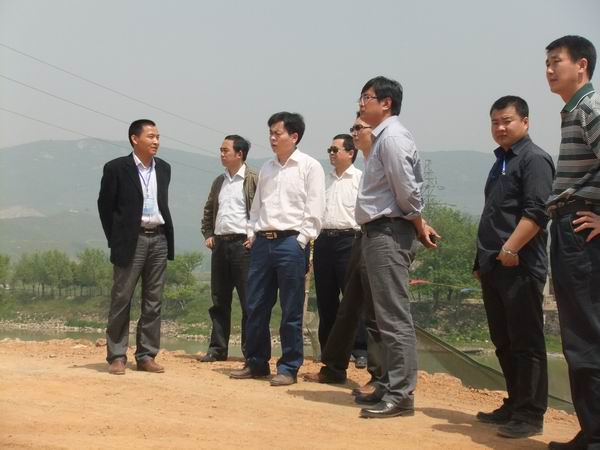何局長首先來到我部北山河大橋施工現(xiàn)場(chǎng),觀看主橋11#墩部位插板樁完成后的主墩承臺(tái)開挖情況及引橋樁基的施工情況。在聽完項(xiàng)目經(jīng)理冷峰對(duì)當(dāng)前大橋施工的系統(tǒng)介紹后,何局長對(duì)我部大橋施工的質(zhì)量控制及安全管理提出了具體要求。